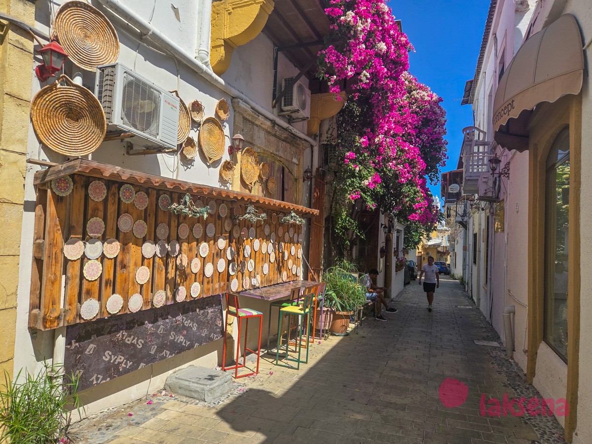 Старый город Кирении — небольшой, но очень живописный, уютный и атмосферный, с узкими извилистыми улочками, застроенными каменными (из разобранных крепостных стен) или белыми оштукатуренными (как в Греции) домами. И эти каменные ущелья полны цветов и зелени.